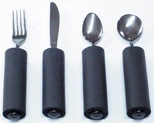 Provides easy grasp for those with arthritis or limited hand involvement. Foam handle may be removed when grasp improves. Plastic inner handle is approximately 5/8" diameter. Overall diameter is approximately 1½". Stainless steel. Usually Drop-ships direct from manufacturer in 5-7 business days