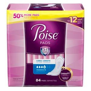 - Poise Pads, Moderate, Long, 84/pk, 2 pk/cs